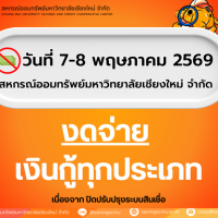 งดจ่ายเงินกู้ทุกประเภท เนื่องจาก ปิดปรับปรุงระบบสินเชื่อ