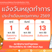 แจ้งวันหยุดทำการ เดือนพฤษภาคม 2569