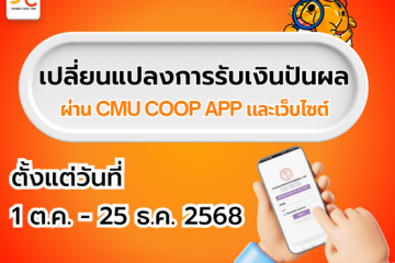🎉 สมาชิกสหกรณ์ฯ มช. เปลี่ยนแปลงการรับเงินปันผลได้แล้ว! 📅 เปิดให้ดำเนินการ: 1 ตุลาคม – 25 ธันวาคม ...