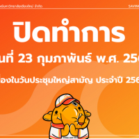 ปิดทำการ วันที่ 23 กุมภาพันธ์ พ.ศ. 2569 เนื่องในวันประชุมใหญ่สามัญ ประจำปี 2568