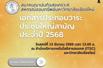 เอกสารประกอบวาระการประชุมใหญ่สามัญ ประจำปี 2568 สส.สอ.มช. >> คลิกอ่านไฟล์ PDF ที่นี่!!...
